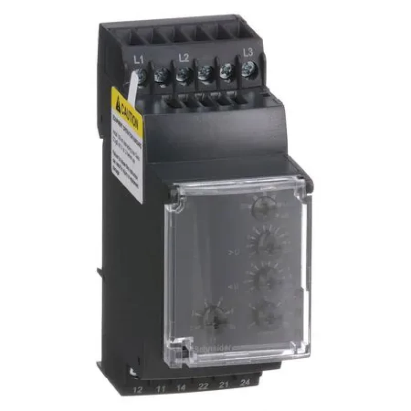 Phase Monitor Relay, Input or Control Voltage 208 to 480V AC, AC Contact Rating - Relay 3A @ 250V, 5A @ 24V, DC Contact Rating - Relay 1.00A @ 24V, Number of Pins - Relay 12, Mounting - Relay DIN Rail, Contact Form - Relay DPDT, Over Voltage Adjustable 2 to 20 Percent of Line Voltage Setting, Under Voltage 193 to 484V AC, Phase Loss Sensitivity Yes, Phase Reversal Yes, Phase Unbalance Adjustable 5 to 15 Percent, Restart Auto