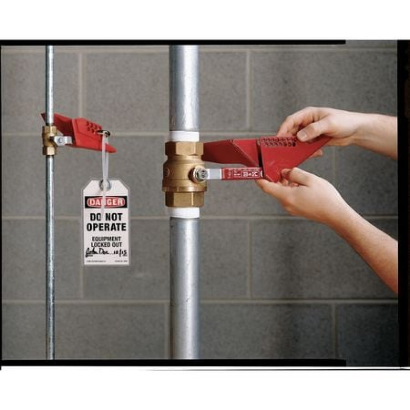 Ball Valve Lockout, Red, Material Steel, Max. Number of Padlocks 8, Padlock Shackle Max. Dia. 9/32 in, Fits Pipe Size 1-1/4 in to 3 in, Handle Thickness 7/16 in, Handle Width 2 3/32 in, Height 5 in, Width 5 in, Length 7 1/2 in, Temp. Range -30 Degrees F to 350 Degrees F, For Use With 1-1/4 in to 3 in