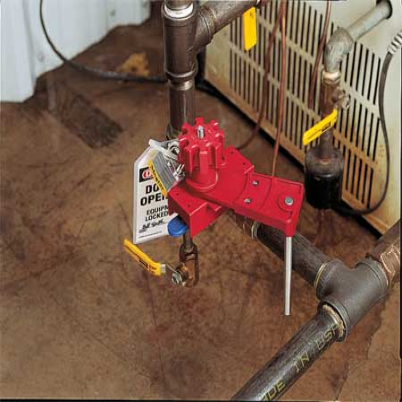 Blocking Arm, Red, Material Steel/Nylon, Handle Thickness 1 3/32 in, Handle Width 1 19/32 in, Height 7 5/32 in, Width 2 1/2 in, Length 7 7/10 in, Temp. Range 0 Degrees to 250 Degrees F, For Use With Large Universal Valve Lockout