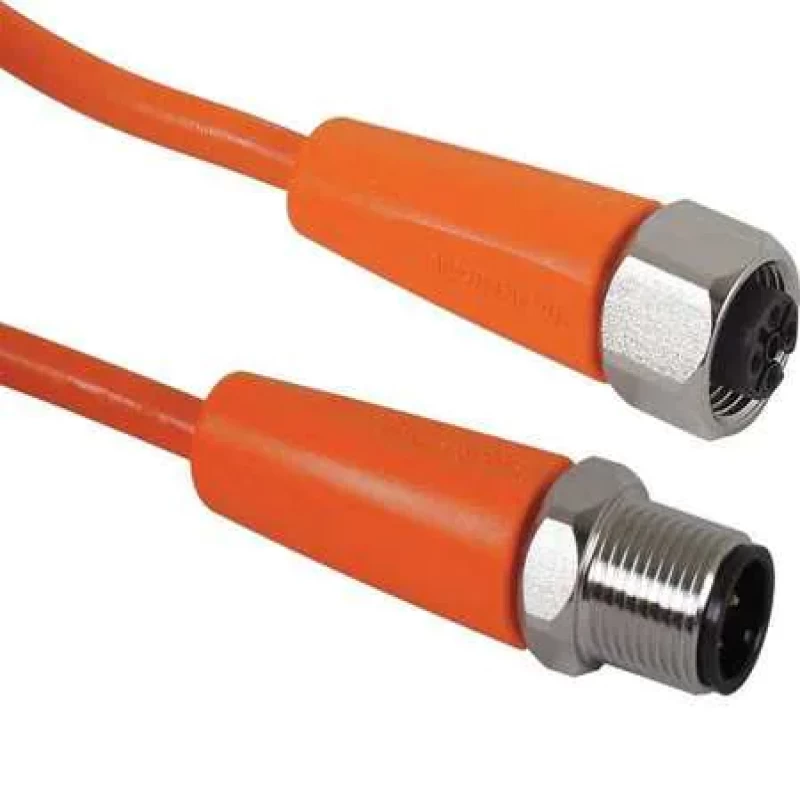 Cordset, End 1 Number of Pins 5, End 1 Gender and Plug End Female Straight, End 2 Gender and Plug End Male Straight, End 1 Keyway Single, Cable Length 5 m, Jacket Color Orange, Number of Conductors 4, End 1 Connection Type Receptacle, End 2 Connection Type Plug, End 2 Number of Pins 4, End 2 Thread M12, End 2 Keyway Single, Max. Voltage 250V AC/300V DC, Features Gold-Plated Contacts, Max. Amps 4 A, Wire Size 22 AWG, Jacket Material PVC, IP Rating 65,67,68,69K