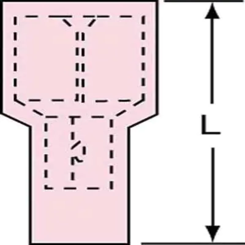 Female Disconnect, Insulation Full, Insulation Type Nylon, Insulation Color Red, Wire Range 22 to 18 AWG, Tab Size 0.032 in x 0.250 in, Barrel Inside Dia. 0.076 in, Max. Temp. 221 Degrees F, Max. Voltage 600 V, Overall Length 0.91 in, Seam Brazed, Connection Material Tin-Plated Brass, Standards CSA Certified, RoHS Compliant, UL Listed, Connection Type Crimp