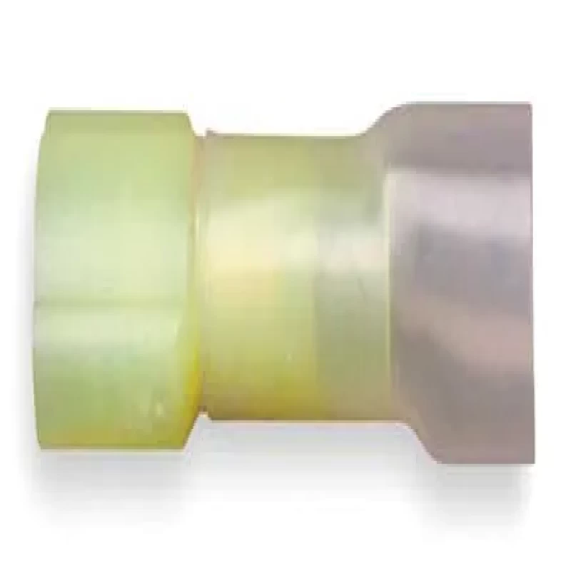 Female Disconnect, Insulation Full, Insulation Type Heat Shrink, Insulation Color Yellow, Wire Range 12 to 10 AWG, Tab Size 0.032 in x 0.250 in, Barrel Inside Dia. 0.165 in, Max. Temp. 221 Degrees F, Max. Voltage 600 V, Overall Length 1.2 in, Seam Butted, Connection Material Tin-Plated Brass, Standards CSA Certified, RoHS Compliant, UL Listed, Connection Type Crimp, Package Quantity 25