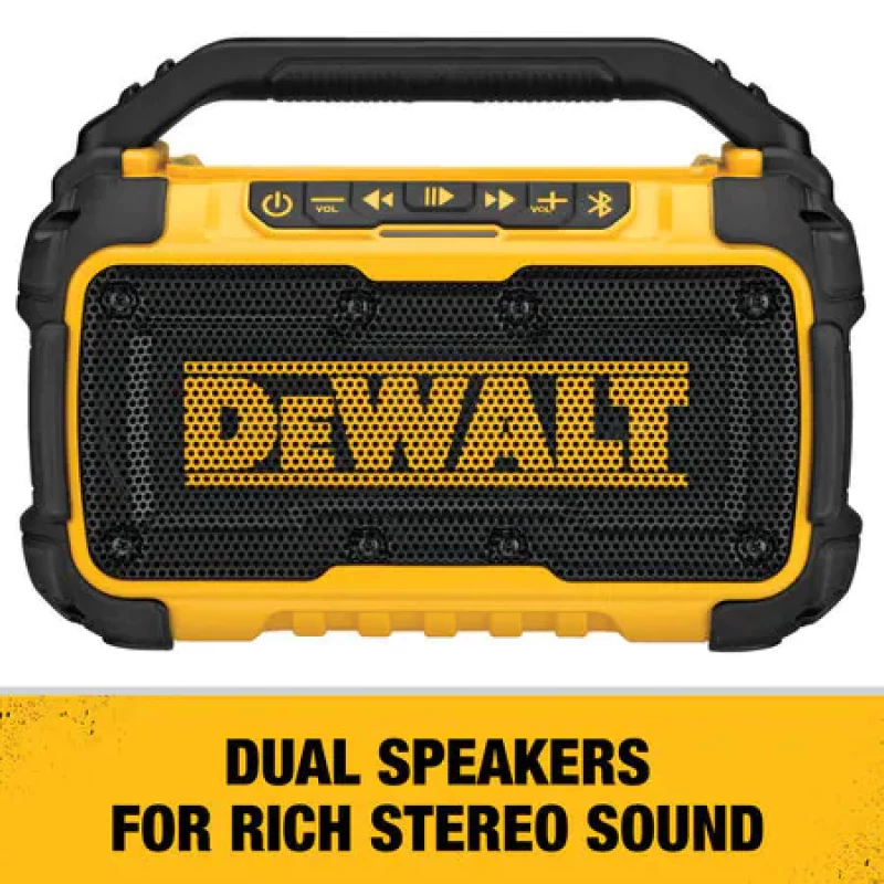 Jobsite Bluetooth Speaker, Bare Tool, Voltage 12.0 V, For Use With 11A168, Cordless Tool Battery Type Li-Ion, Series 12V/20V MAX, Battery Capacity 2.0 Ah, 4.0 Ah, Battery Included No, Battery Pack Replacement 21RV46, 21RV47, Charger Input Voltage 120V AC, Includes Detachable Power Cord