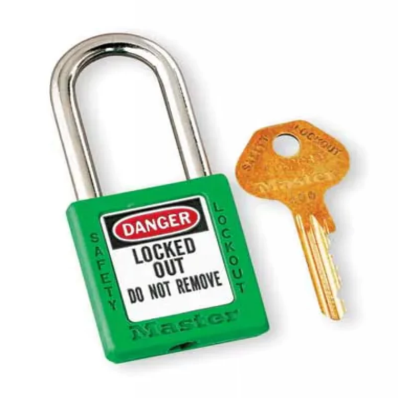 Lockout Padlock, Key Type Alike, Body Material Thermoplastic, Shackle Dia. 1/4 in, Shackle Height 1 1/2 in, Shackle Material Steel, Shackle Width 1/4 in, Body Width 1 1/2 in, Standards OSHA 1910.147, Body Height 1 3/4 in, Body Color Green, Shackle Type Open, Package Quantity 6