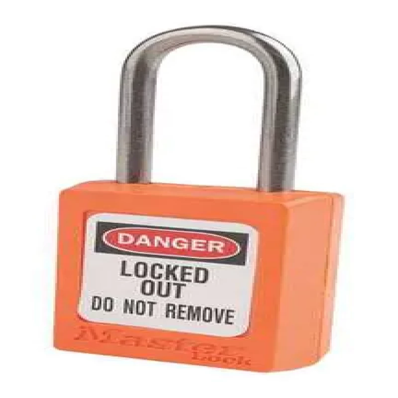 Lockout Padlock, Key Type Alike, Body Material Thermoplastic, Shackle Dia. 3/16 in, Shackle Height 1 1/2 in, Shackle Material Stainless Steel, Shackle Width 5/8 in, Body Width 1 3/8 in, Body Height 1 13/16 in, Body Color Orange, Shackle Type Open, Package Quantity 12