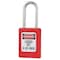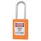 Lockout Padlock, Key Type Different, Body Material Thermoplastic, Shackle Dia. 3/16 in, Shackle Height 1 1/2 in, Shackle Material Stainless Steel, Shackle Width 5/8 in, Body Width 1 3/8 in, Legend Danger Locked Out Do Not Remove, Standards OSHA, Body Height 1 13/16 in, Body Color Orange, Shackle Type Open