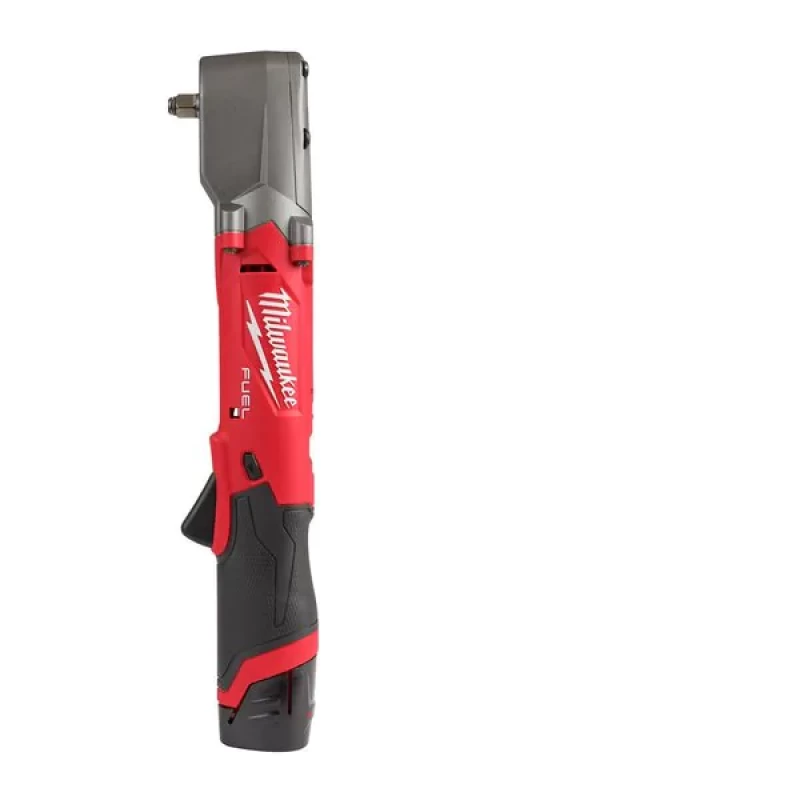 The MILWAUKEE® M12 FUEL™ 3/8" Right Angle Impact Wrench w/ Friction Ring Kit is the industry's most powerful right angle impact wrench. This battery-powered right angle impact wrench delivers up to 220 ft-lbs. of nut-busting torque without kickback to remove stubborn bolts and fasteners. This durable cordless impact wrench easily fits into tighter spaces than traditional pistol-grip impact wrenches with a profile head of only 2.2 inches, reducing the user's need for socket extensions. The 4-Mode Drive Control delivers unmatched control in various fastening and bolt removal applications. Milwaukee REDLINK PLUS™ Intelligence provides maximum performance and protection against overloads, over-heating, and over-discharge. The M12™ REDLITHIUM™ Battery Packs are compatible with all M12™ tools, delivering more work per charge and more work over the life of the pack.