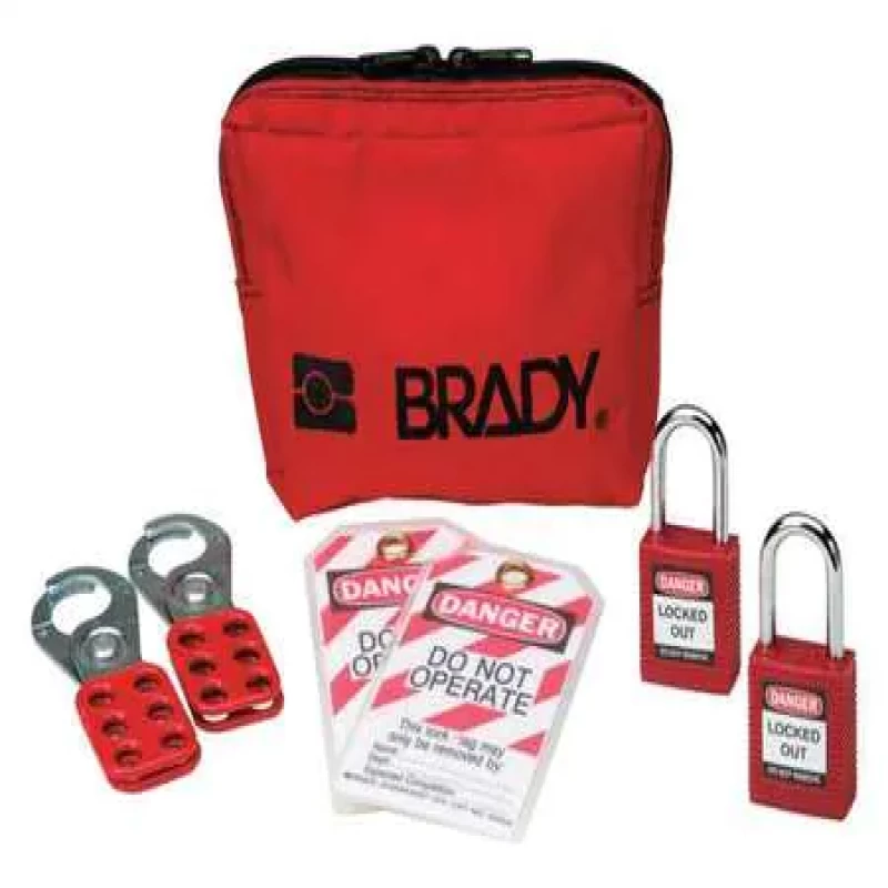 Portable Lockout Kit, Filled, Portable Yes, Lockout Application Electrical Lockout, Number of Components 8, Number of Padlocks Included 2, Case Style Pouch, Red, Case Height 6 in, Case Width 8 in, Case Depth 1 in, Case Material Nylon, Language English, Keyed Alike, Included Padlock Body Material Nylon
