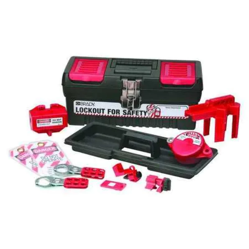Portable Lockout Kit, Filled, Portable Yes, Lockout Application Electrical/Valve Lockout, Number of Components 10, Number of Padlocks Included 0, Case Style Tool Box, Black, Case Height 14 in, Case Width 7 1/8 in, Case Depth 5 1/2 in, Case Material Polypropylene, Language English