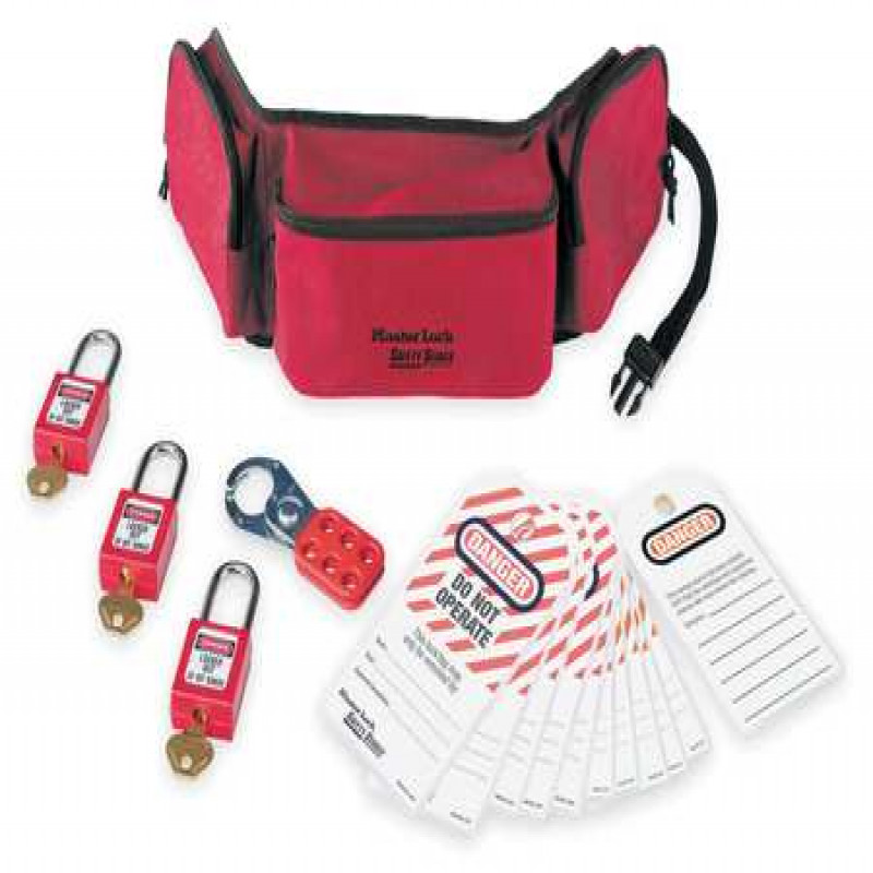 Portable Lockout Kit, Filled, Portable Yes, Lockout Application Electrical Lockout, Number of Components 16, Number of Padlocks Included 3, Case Style Pouch, Red, Case Height 6 in, Case Width 24 in, Case Depth 3 3/4 in, Case Material Nylon, Language English, Keyed Alike, Included Padlock Body Material Thermoplastic