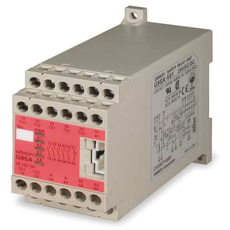 Safety Monitoring Relay, Input or Control Voltage 24V AC/DC, AC Contact Rating - Relay 5A @ 250V, DC Contact Rating - Relay 5A @ 30V, Mounting - Relay DIN Rail, Output Switch Configuration - Relay (1) SPST-NC Aux. Relay, (3) SPST-NO Instantaneous, Input Power Consumption (Burden) 1.8 VA, Number of Inputs - Relay 2, Use With - Relay E Stop, Delay Time - Relay No Delay, Response Time - Relay 10 msec, Electrical Connection - Relay Screw Terminal, Number of Pins - Relay 20