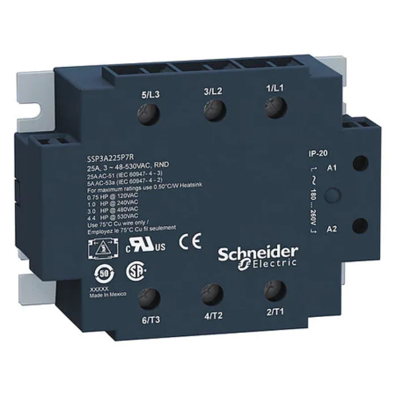 Solid State Relay, Input or Control Voltage 18 to 36V AC, Output or Controlled Voltage Range 48 to 530V AC, Max. Output Amps w/Heat Sink 50, Heat Sink Not Included, Switch Type SCR, Contact Form - Relay (3) SPST-NO, Relay Turns On At Zero Crossing, Input Power Consumption (Burden) 0.7W, Mounting - Relay Surface, Finger Safe Yes