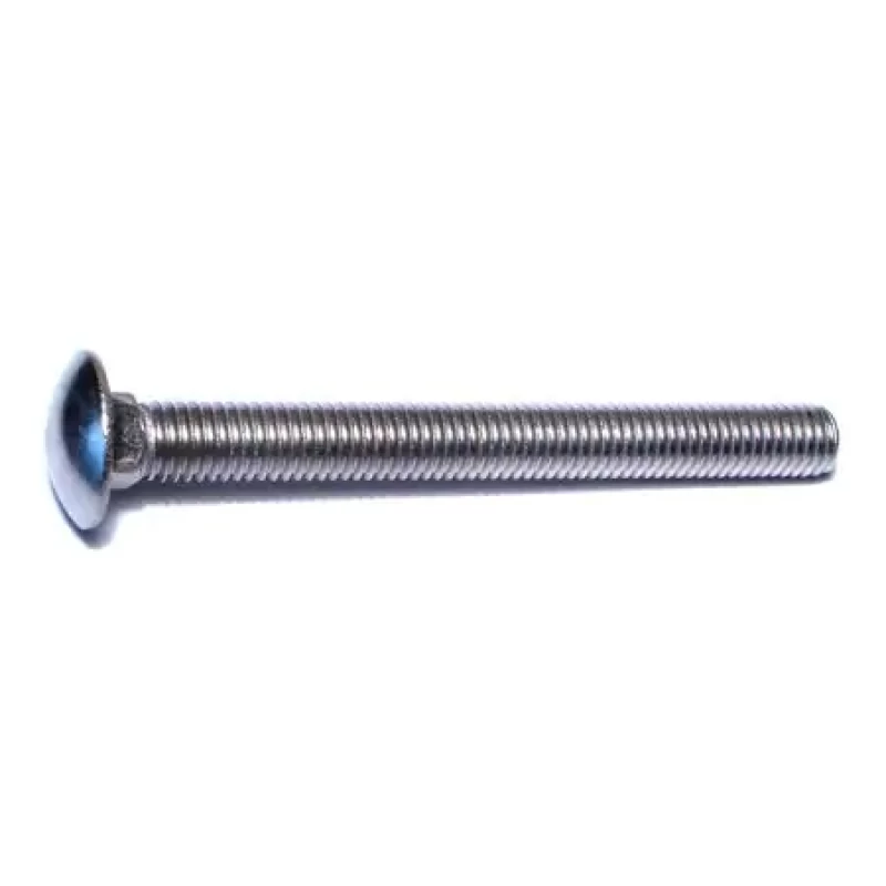 A carriage bolt has a domed or countersunk head, and the shank is topped by a short square section under the head. The square section grips into the part being fixed (typically wood), preventing the bolt from turning when the nut is tightened.