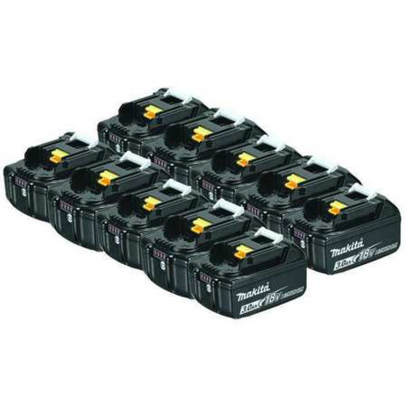 Battery, Battery Capacity 3 Ah, Battery Chemistry Li-Ion, Charger Included No, Number of Batteries Included 10, Voltage 18V DC, Cordless Tool Kit Contents (10) Batteries, Number of Cells 10, Battery Series LXT, Cordless Tool Battery Platform 18V LXT, Weight 1.4 lb, Wireless Tool Tracking No, Package Quantity 10
