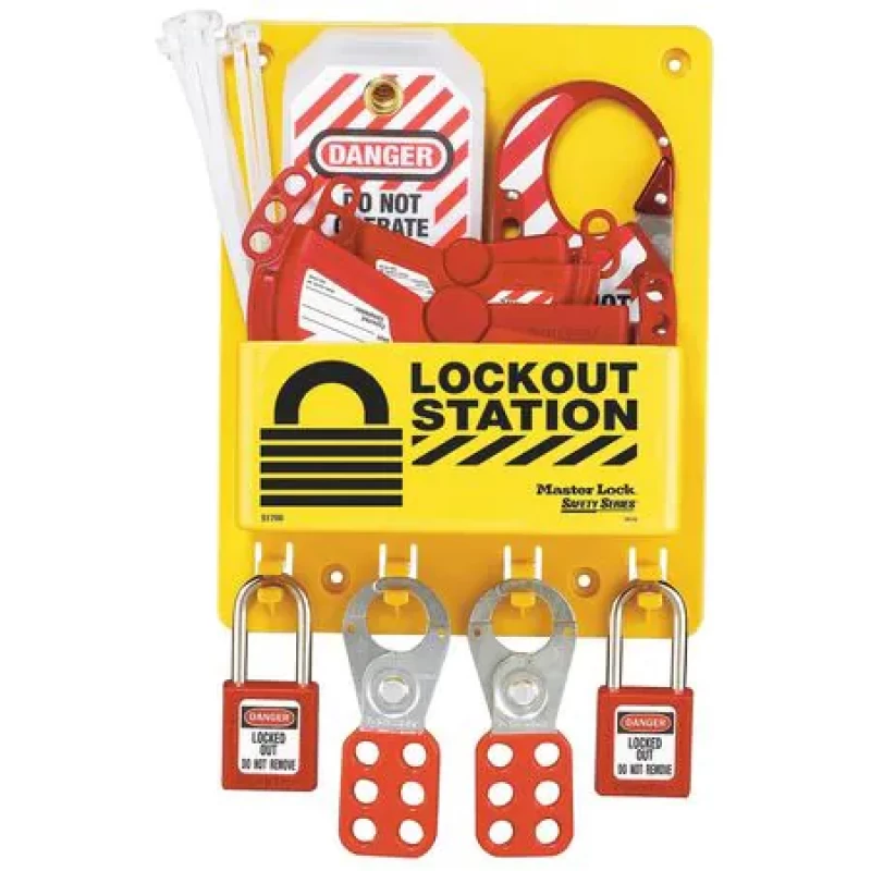 Lockout Station, Filled, Lockout Application Electrical Lockout, Number of Components 10, Number of Padlocks Included 2, Included Padlock Body Material Thermoplastic, Height 9 3/4 in, Width 8 in, Depth 3 1/2 in, Color Yellow, Material Polycarbonate, Max. Number of Padlocks 2, Wall Mounting Yes, Portable No