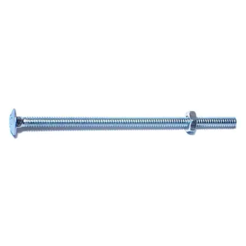 A carriage bolt has a domed or countersunk head, and the shank is topped by a short square section under the head. The square section grips into the part being fixed (typically wood), preventing the bolt from turning when the nut is tightened.
