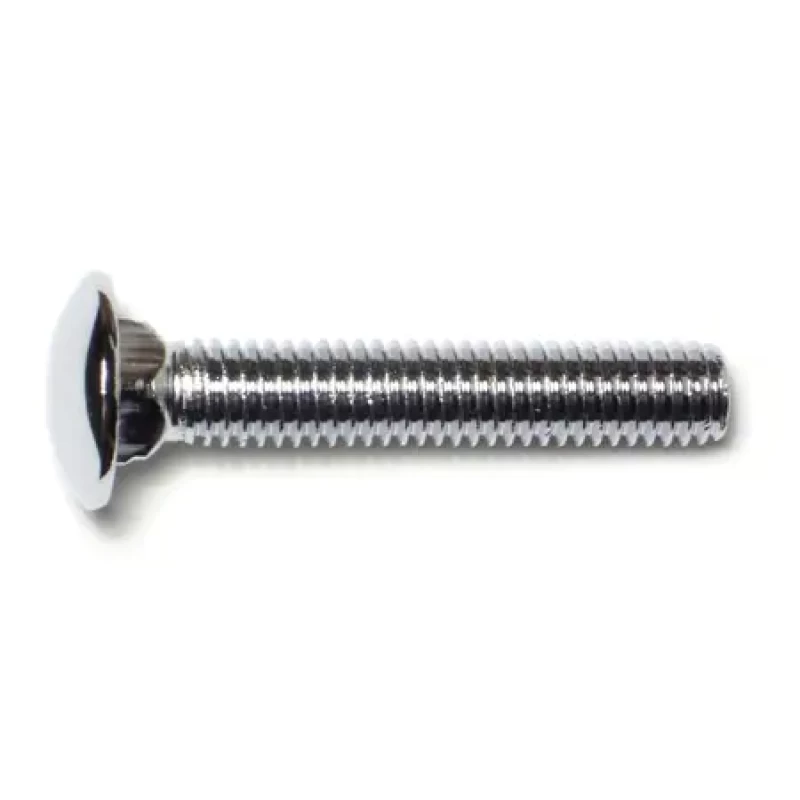 A carriage bolt has a domed or countersunk head, and the shank is topped by a short square section under the head. The square section grips into the part being fixed (typically wood), preventing the bolt from turning when the nut is tightened.