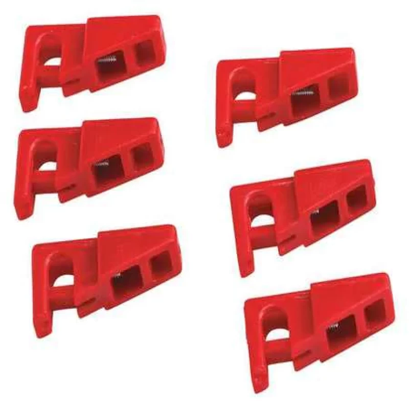 Circuit Breaker Lockout, No-Hole, Max. Number of Padlocks 6, Padlock Shackle Max. Dia. 9/32 in, Red, Height 1 1/8 in, Width 3/4 in, Length 2 1/4 in, Material Polycarbonate, Circuit Breaker Poles 1, Package Quantity 6