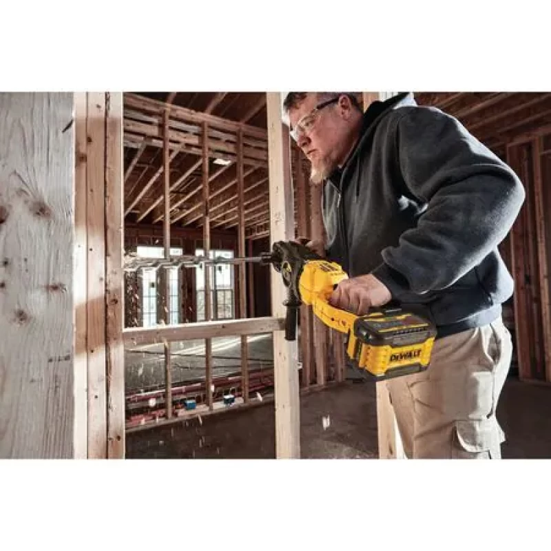Drill Kit, Voltage 60V DC, Battery Included, Battery Capacity (1) 3 Ah, Cordless Tool Battery Type Li-Ion, Brushless Motor Yes, Number of Batteries 1, FLEXVOLT Series, No Load RPM 0 to 400/0 to 1320, Chuck Size 7/16 in Hex Quick Lock, Max. Power 2600UWO, Max. Torque Not Specified, Battery Included 53JH17, Handle Type Joist and Stud Right Angle, Battery Pack Replacement 53JH17, Tool Length 23-7/8 in, Tool Weight 13.9 lb, Includes Kit Bag, Side Handle