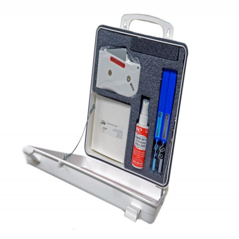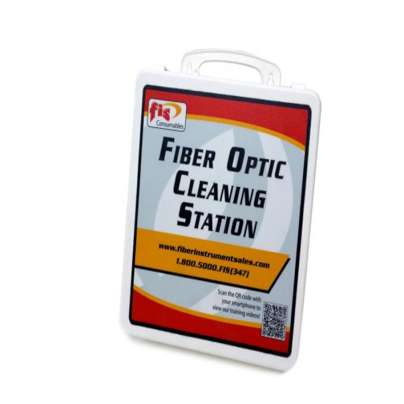 The FIS Fiber Optic Cleaning Station is a unique product that provides immediate access to cleaning supplies for technicians. These cleaning kits are wall mountable similar to First Aid kits found throughout many facilities. Open the top cover and find cleaning notes for technicians not familiar with fiber optics. Kits include cleaning instruments for both 2.5mm and 1.25mm ferrules on patchcords and through adapters in the back plane of enclosures. Optional MPO/MTP cleaning can be added to kit as well. Special edition and custom kits are available. Standard kit contents: (100) 4"x4" Clean Dry Wipes, 2 oz. Cleaning Solution, Auto-Advance Connector Cleaner, 2.5mm & 1.25mm back plane ferrule cleaning tools. Optional kits with MPO/MTP cleaning tool or AFL One Click Cleaners.