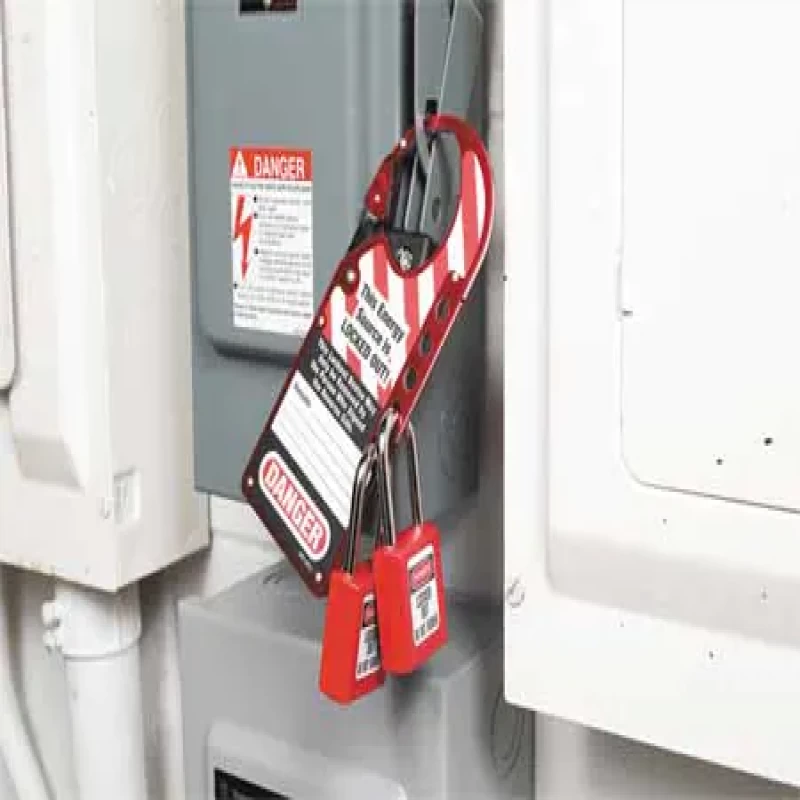 Labeled Lockout Hasp, Lockout Hasp Style Snap-On, Red, Max. Number of Padlocks 5, Material Aluminum/Steel, Closed Hasp Hole Size 1 3/4 in x 2 1/8 in, Length 7 in, Width 2 7/8 in, Padlock Shackle Max. Dia. 3/8 in