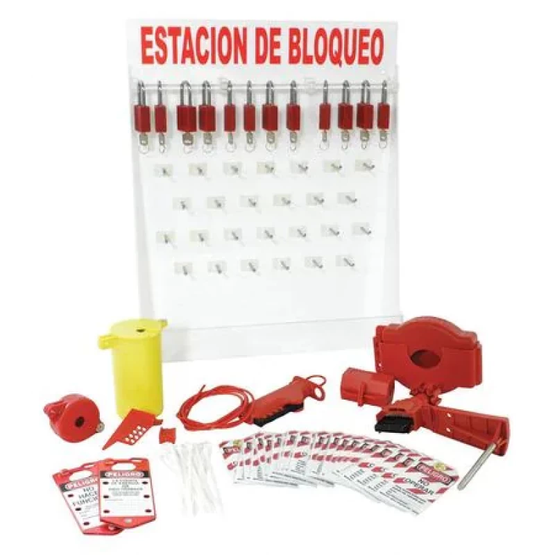 Lockout Board, Filled, Lockout Application General Lockout, Number of Components 47, Number of Padlocks Included 12, Included Padlock Body Material Steel, Height 26 in, Width 19 1/2 in, Depth 5 in, Color White, Material Polystyrene, Max. Number of Padlocks 15, Wall Mounting Yes, Portable No