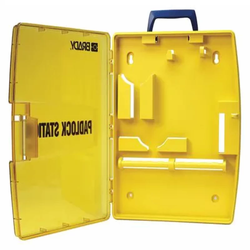 Lockout Station, Unfilled, Number of Components 0, Number of Padlocks Included 0, Height 17 in, Width 13 1/4 in, Depth 2 1/2 in, Color Yellow, Material Polypropylene, Wall Mounting Yes, Portable Yes