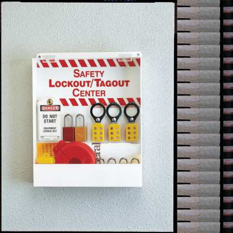 Lockout Station, Filled, Lockout Application Valve Lockout, Number of Components 88, Number of Padlocks Included 6, Height 17 in, Width 14 in, Depth 2 7/8 in, Color Red/White, Material Acrylic, Max. Number of Padlocks 6, Wall Mounting Yes, Portable No