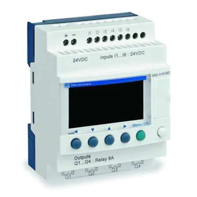 Logic Relay, Input Voltage 100 to 240V AC, Output Type Relay, 8.0 A Amps, Number of Inputs 6, Number of Outputs 4, Counters 16, Timers 16, No Clock, LCD Display, Depth 3.9 in, Height 3.5 in, Width 2.5 in