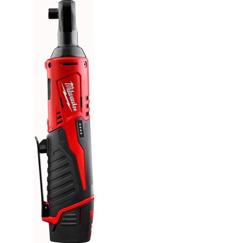 Choose the sub-compact ratchet with best-in-class power, speed and durability. The M12™ cordless 3/8 in. lithium-ion ratchet is the ideal tool for auto mechanics, maintenance and repair professionals looking for maximum performance and productivity in a subcompact cordless tool. It utilizes a powerful 12 Volt motor to produce up to 35 ft-lbs of torque and 250 RPM, giving users the power and speed of a pneumatic ratchet without the AirGrip. It’s powered by the M12 REDLITHIUM™ battery pack, which delivers more work per charge and more work over pack life than the competitors, as well as best-in-class performance in extreme jobsite conditions. At just 10-3/4 in. long and 1.9 lbs, the ratchet is tool-belt portable, and features a 3/4 in. low-profile head design for work in the tightest of spaces and engine bays. The variable-speed metal trigger and reinforced steel housing provide maximum control and durability with any application. The kit includes one M12 battery, a 30-minute charger, a 3/8 in. to 1/4 in. adapter and carrying case.