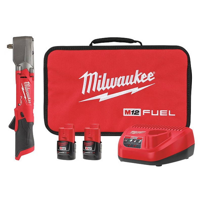 The MILWAUKEE® M12 FUEL™ 3/8" Right Angle Impact Wrench w/ Friction Ring Kit is the industry's most powerful right angle impact wrench. This battery-powered right angle impact wrench delivers up to 220 ft-lbs. of nut-busting torque without kickback to remove stubborn bolts and fasteners. This durable cordless impact wrench easily fits into tighter spaces than traditional pistol-grip impact wrenches with a profile head of only 2.2 inches, reducing the user's need for socket extensions. The 4-Mode Drive Control delivers unmatched control in various fastening and bolt removal applications. Milwaukee REDLINK PLUS™ Intelligence provides maximum performance and protection against overloads, over-heating, and over-discharge. The M12™ REDLITHIUM™ Battery Packs are compatible with all M12™ tools, delivering more work per charge and more work over the life of the pack.