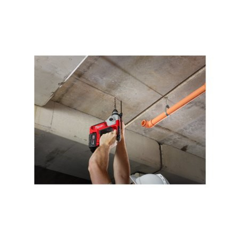 The Milwaukee M18™ 5/8 in. SDS plus compact rotary hammer delivers up to 20% faster drilling, 50% longer life, and drills more than 100 holes per charge. The M18™ 5/8 in. SDS plus compact rotary hammer is ideal for drilling in tight spaces and overhead, while delivering the performance required by the professional. Powered by the M18™ REDLITHIUM™ battery, the Milwaukee® M18™ 5/8 in. SDS plus compact rotary hammer delivers 0-1, 300 RPM and 0-7,000 BPM. The electro-pneumatic design allows for drilling up to 5/8 in. holes in concrete and masonry. Two-mode operation – rotary hammer and rotation only – provides maximum versatility and dependable operation regardless of application or orientation.