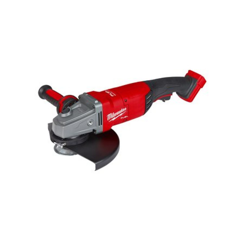 The M18 FUEL™ 7 in. / 9 in. Large angle grinder is the world's first 18 V large angle grinder generating the power of a 15 A corded large angle grinder, is up to 2 lbs lighter, and has 9 in. grinding capacity. Providing high performance, advanced ergonomics & legendary durability, this grinder is designed to complete the toughest grinding, surface preparation, and cutting applications with any 7 in. to 9 in. accessory. The POWERSTATE™ brushless motor provides 6,600 RPM and higher speeds under load for corded grinding/cutting performance. REDLINK Plus™ intelligence ensures maximum performance and protection from overload, overheating and over discharge. The M18 REDLITHIUM HIGH OUTPUT™ HD12.0 battery (sold separately) delivers unmatched run-time in all applications. Tool-free accessory changes using the FIXTEC nut and guard adjustments mean less downtime during work.