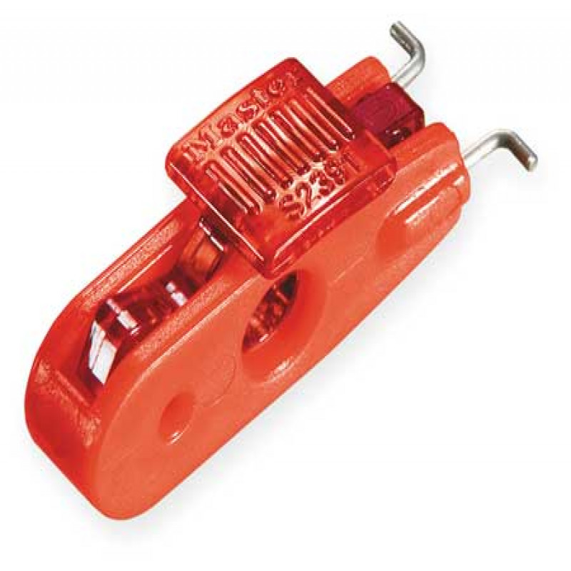 DIN Style Miniature Breaker Lockout, Pin-Out, Wide, Circuit Breaker Voltage 120/277, Max. Number of Padlocks 1, Padlock Shackle Max. Dia. 9/32 in, Red, Height 45/64 in, Width 2 2/5 in, Length 4 1/2 in, Material Steel/Plastic