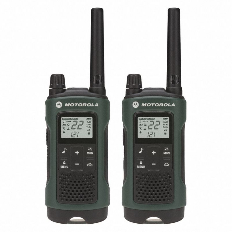 Help extend the transmission range of this MOTOROLA Talkabout™ portable two way radio using the Push-to-Talk (PTT) power boost mode. Model features hands-free communication and Quiet Talk (QT) mode that can filter out unwanted transmissions from non-Motorola radios in heavy traffic areas. Easily request help by just pressing the emergency alert button and the radio will transmit an alert siren followed by spoken or incidental sounds. The VibraCall™ feature alerts you to incoming calls with your ringer turned off. Radio can keep you updated with weather conditions via a weather channel or through weather alerts. The built-in LED flashlight is ideal for use in unexpected emergencies or during power outages.