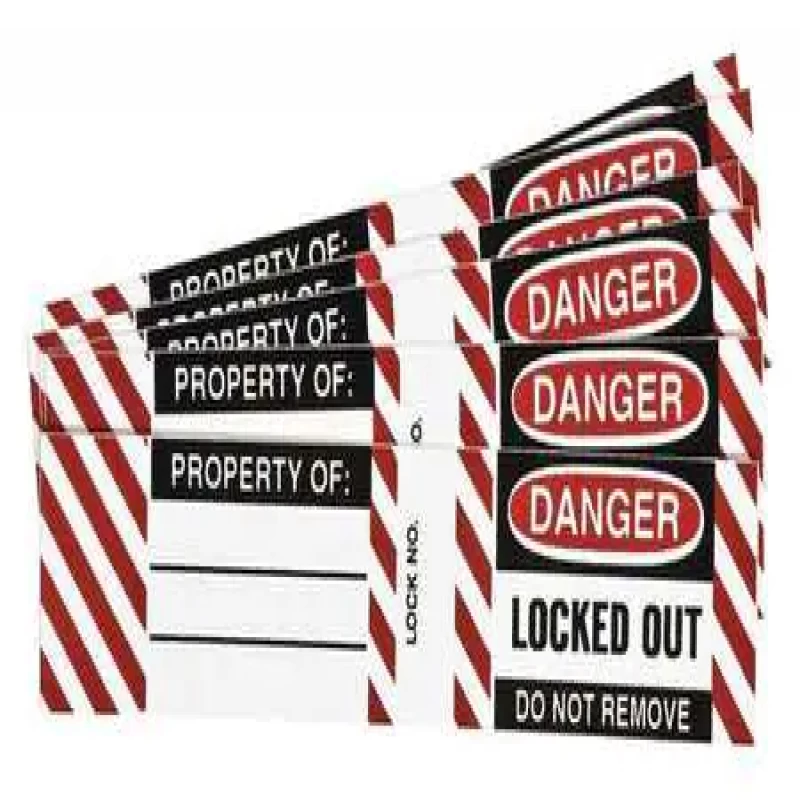 Padlock Label, Horizontal Rectangle, Number of Printed Sides 1, English, Sign Format Traditional OSHA, Sign Legend SIDE 1: DANGER LOCKED OUT DO NOT REMOVE.,SIDE 2: PROPERTY OF: LOCK NO. DANGER LOCKED OUT. DO NOT REMOVE., Sign Legend Style Text,