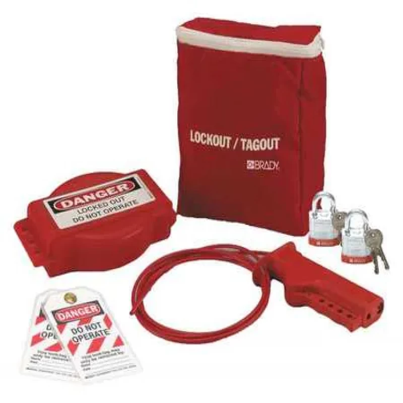 - Includes: (1) Red Nylon Case, (2) Steel Padlocks, (1) 1 in to 6-1/2 in Adjustable Gate Valve Lockout, (1) Cable Lockout with 8' Vinyl Sheathed Steel Cable, (2) Tags