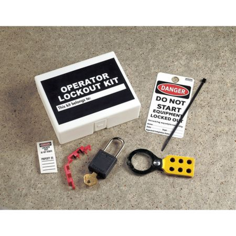 Portable Lockout Kit, Filled, Portable Yes, Lockout Application Electrical Lockout, Number of Components 6, Number of Padlocks Included 1, Case Style Box, White, Case Height 5-1/2 In., Case Width 6-7/8 In., Case Depth 2 In., Case Material Plastic, Language English