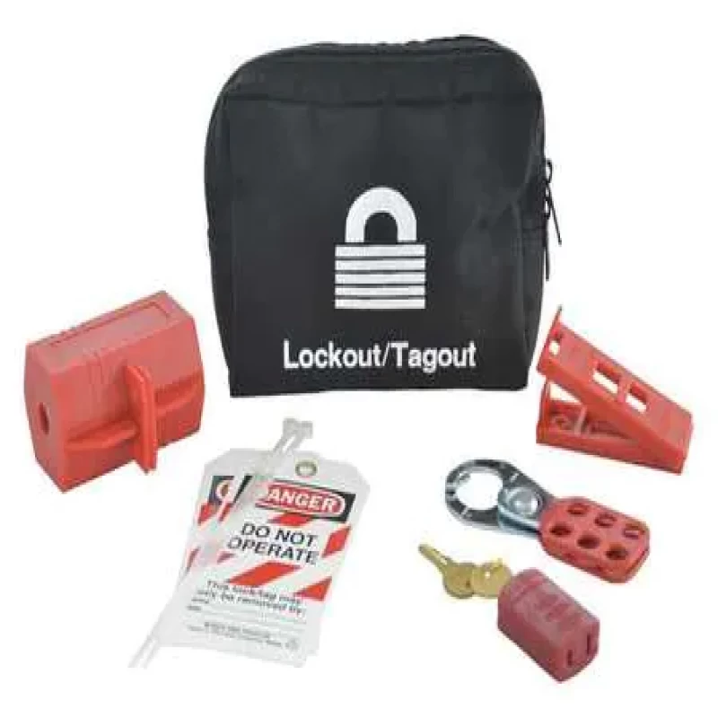 Portable Lockout Kit, Filled, Portable Yes, Lockout Application Electrical Lockout, Number of Components 6, Number of Padlocks Included 0, Case Style Pouch, Black, Case Height 7 in, Case Width 6 in, Case Depth 2 in, Case Material Canvas, Language English