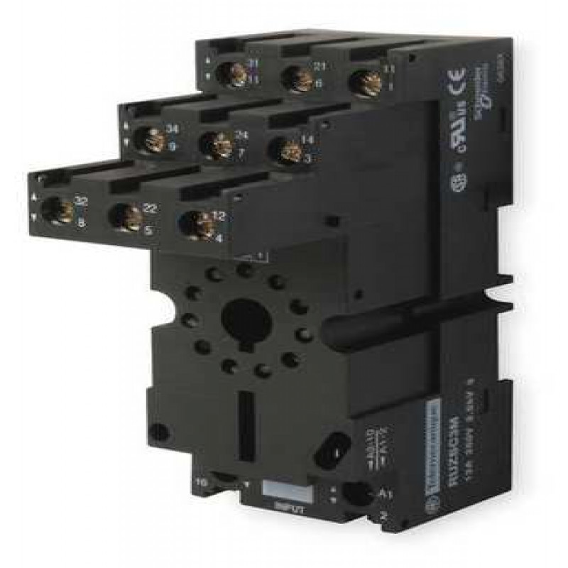 Relay Socket, Socket Type - Relay Elevator, Finger Safe, Base Style - Relay Socket Octal, Number of Pins - Relay 11, Contact Form - Relay Socket 3PDT, Contact Rating - Relay Socket 12A @ 250V AC, Mounting - Relay DIN Rail, Socket Code - Relay B, Electrical Connection - Relay Socket Box Lug, Height - Relay Socket 2.48 in, Width - Relay Socket 1.42 in, Depth - Relay Socket 3.78 in, Status Indicator None, Color Black, Standards IEC 61984, UL/CSA/CE Certified