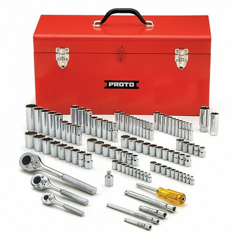 SAE and metric socket sets come with drive tools and an assortment of sockets for a range of fastener sizes. SAE sets come in sizes that are measured in inches and fractions of an inch to fit fasteners with an SAE (inch) size head. Metric sets come in sizes that are measured in millimeters to fit fasteners with a metric size head.