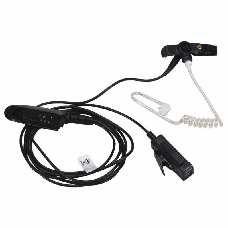 The Motorola 2-wire surveillance kit is designed for discrete communication with Motorola professional 2-way radios, including Series Nos. HT750, HT1250, HT1550, MTX850, MTX950, MTX8250, MTX9250, and PR860, sold separately. This 2-wire kit includes an extended-wear earpiece with rubber eartip and clear acoustic tube, plus combined microphone and push-to-talk (PTT) feature.