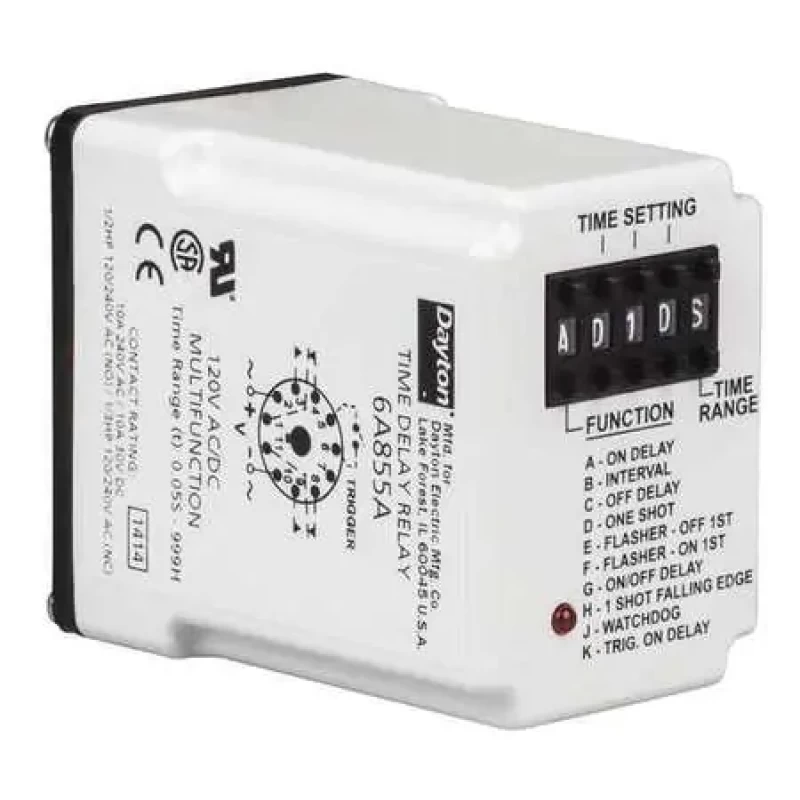 Multi-Function Time Delay Relay, Function - Timing Relay Flasher (Off First), Flasher (On First), Interval On, Off Delay, Off/On Delay, On Delay, One Shot, Single Shot Falling Edge, Triggered On Delay, Watchdog, Coil Volts 120V AC, AC Contact Rating - Relay 10A @ 240V, DC Contact Rating - Relay 10A @ 30V, Base Type - Plug In Relay Octal, Number of Pins - Relay 11, Mounting - Relay Plug In, Contact Form - Relay DPDT, Power Consumption - Relay 3.0 VA