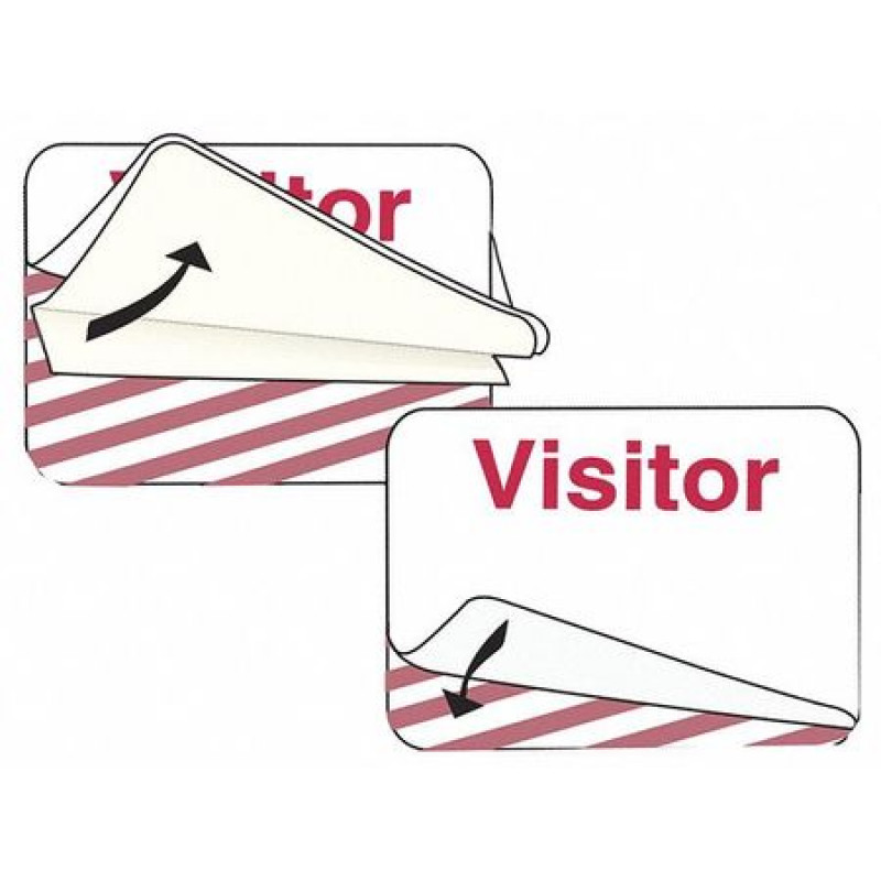 Visitor Expiring Badge, Horizontal, Number Series Blank, Material Plastic, Color Red, White, Length 3 in, Width 1/64 in, Height 2 in, Expiration Time 24 hr, Legend Visitor, For Use With Security Management, Includes (500) Front and Back Badge Parts, Material Thickness 1/64 in