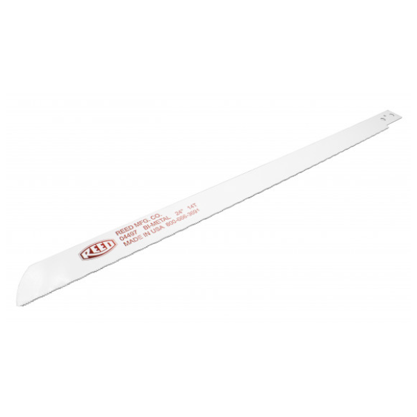 For speed, straightness of cut, long life and safety, these bi-metal, portable, power hack saw blades are the best choice for the REED Saw It® and heavy-duty power hack saws made by Widder®, Fein®, and Spitznas®. The extra blade depth (1 3/8”) and the Matrix® high-speed steel (HSS) cutting edge allow a straighter cut. Bi-metal blade construction reduces the tendency of solid HSS blades to shatter. Wavy set and high tooth hardness yield longer life blade life. Portable power hack saw blades cut copper, steel, stainless steel, aluminum, and harder plastics like PVC and ABS.