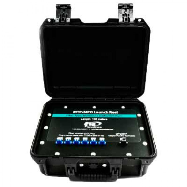 Made with ribbon fiber - This allows you to OTDR test MPO cables. Plug MPO cable into provided MPO adapter port.Use standard launch reel from OTDR to plug into one of the twelve provided standard connector adapters.