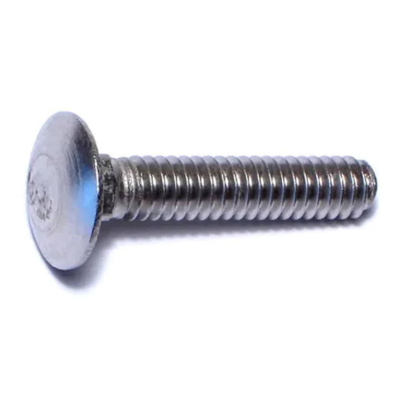 A carriage bolt has a domed or countersunk head, and the shank is topped by a short square section under the head. The square section grips into the part being fixed (typically wood), preventing the bolt from turning when the nut is tightened.