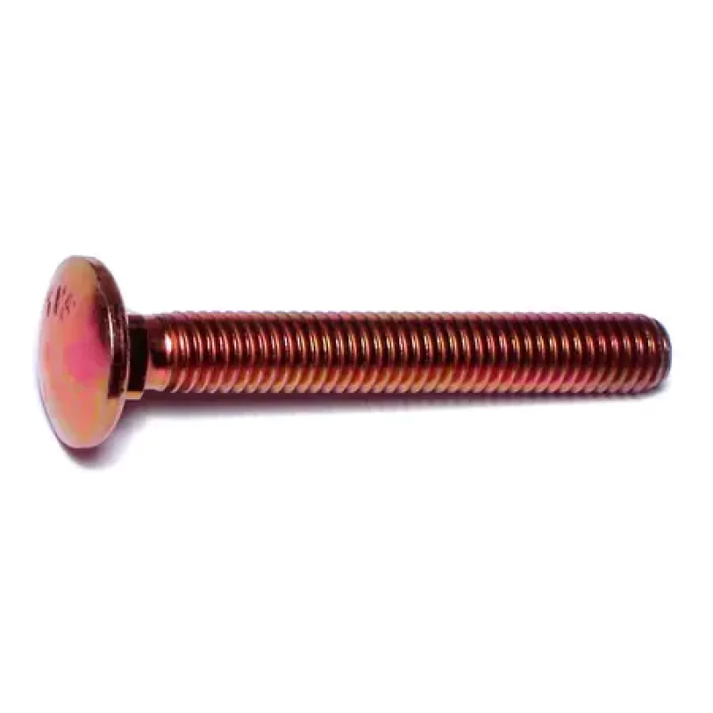 A carriage bolt has a domed or countersunk head, and the shank is topped by a short square section under the head. The square section grips into the part being fixed (typically wood), preventing the bolt from turning when the nut is tightened.