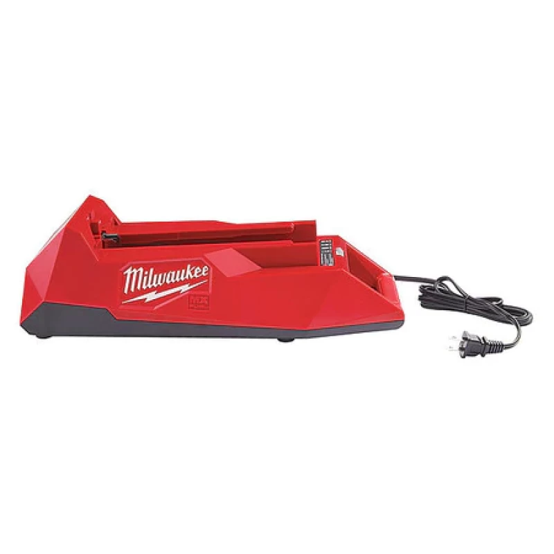 The MILWAUKEE® MX FUEL™ Battery Charger charges the the MX FUEL™ CP203 Battery in 45 minutes and the MX FUEL™ XC406 Battery in 90 minutes, reducing downtime and increasing productivity. This battery charger accepts all Milwaukee MX FUEL™ Battery packs and features REDLINK™ Intelligence, communicating directly with batteries to monitor cell voltage, temperature, and charge status to optimize the performance while maximizing the lifespan of the pack. An internal fan keeps the charger's electronics components cool during operation. The charger indicates when the battery reaches an 80% charge, providing users with the confidence that a substantial amount of work can be completed without having to wait for a full charge. The charger features an integrated carry handle for easy transport, even with batteries attached.