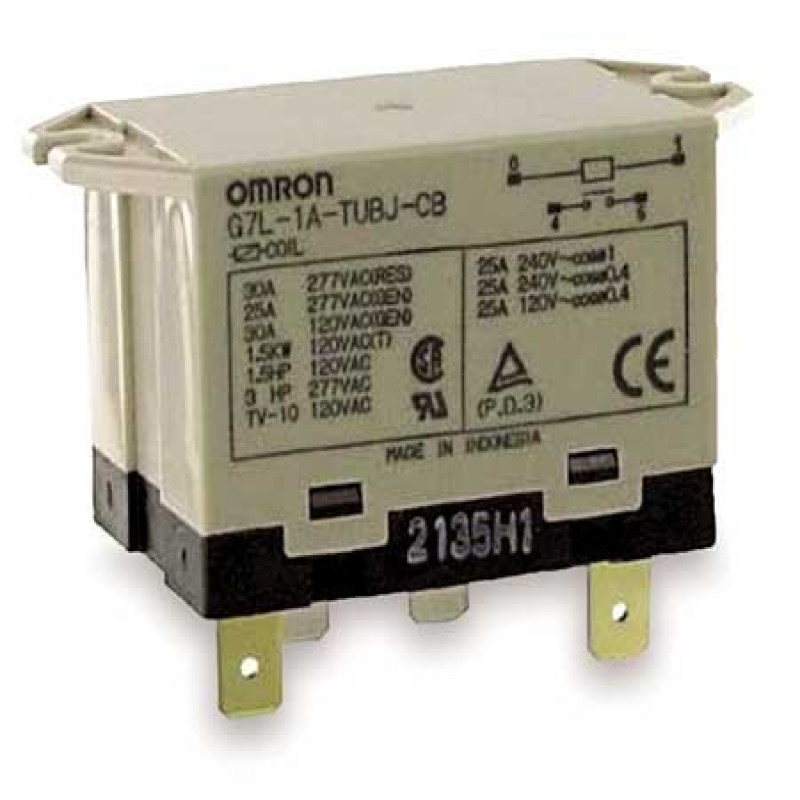 Item - Relay: Enclosed Power RelayCoil Volts: 24V ACAC Contact Rating - Relay: 30A @ 240VNumber of Pins - Relay: 4Contact Form - Relay: SPST-NOMounting - Relay: Bottom FlangePower Consumption - Relay: 2.5 VAContact Material: Silver AlloyElectrical Connection - Power Relay: 1/4 in Tab TerminalContact Amp Rating (Inductive): 25A @ 220VACStandards: CSA, Meets IEC950, TUV, ULBody Depth - Relay: 1.32 inOverall Height - Relay: 1.85 inBody Width - Relay: 1.99 in
